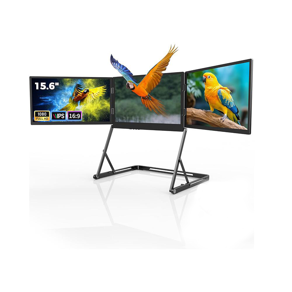 – Screen size: 16:9, IPS, 15.6inch*3 IPS full view – Resolution: 1920*1080 – Display color: 16.7M – Color temperature: 6800K – Viewing angle: 170° – Contrast: 800:1 – Brightness: 250 cd/㎡ – Color gamut: NTSC 45% – Frequency: 60HZ – Type-C full function / Type-C power interface